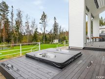 Myös ulkotilat ovat osa kokonaisuutta. Piha-alueella yhdistyvät nurmialueet, istutukset, oma hyötypuutarha sekä poreallas, tarjoten tilaa niin oleskeluun kuin vapaa-aikaan. Energiatehokas maalämpö ja moderni talotekniikka tukevat asumismukavuutta ympäri vuoden.
