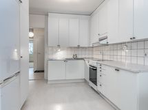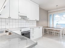 - Keittiön varusteet: Jääkaappipakastin ja liesi. Liesi: Keraaminen liesi. Työtason materiaali: Laminaatti.