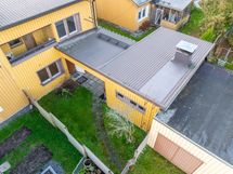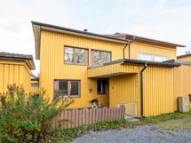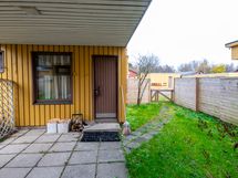 Gården är lättskött och inhägnad, så den är trygg både för barn och husdjur. Det finns en lekplats alldeles bredvid och daghem och skolor finns alldeles i närheten.