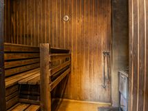 Detta tvåvåningshus befinner sig på en skyddad, kompakt tomt och omfattar på nedre våningen vardagsrum, kök och ett separat WC. Vardagsrummet är rymligt och där finns även en öppen spis. Från vardagsrummet slipper man också via bakgårdens takbelagda del till det separata brasrummet och till bastuavdelningen.