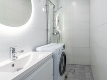 - Pesutilojen kuvaus: Vuonna 2022 täysin remontoitu kylpyhuone. Lasinen suihkuseinä, pyyhekuivain. Pesukone sisältyy hintaan. Lattialämmitys. . Varustus: lattialämmitys.