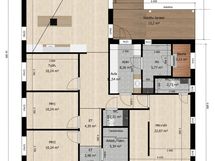 Stiligt kök i svart och trä. Rostfria kyl och frysskåp. Integrerade köksmaskiner. Stor köksö som delar av köket med vardasgrummet. Huset har fyra rymliga sovrum. Två separata wc samt ett rymligt klädvårdsrum med mycket skåputrymme. Rymlig duschrum med två duchar, I duschrummet även bastu med glasvägg.