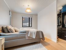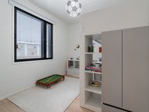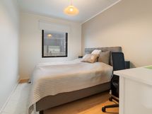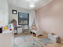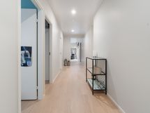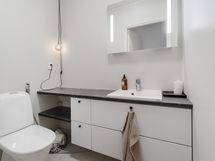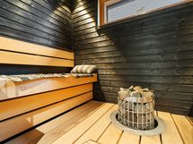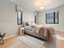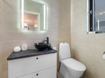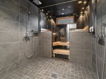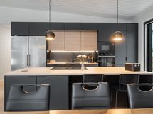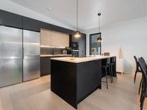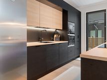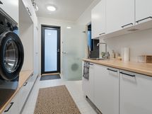 Tyylikäs keittiö mustan ja puun sävyissä. Rosterin väriset jääkaappi ja pakastin. Integroidut kodinkoneet. Suuri keittiösaareke erottaa keittiön olohuoneesta. Talossa on neljä tilavaa makuuhuonetta. Kaksi erillistä WC:tä sekä tilava kodinhoitohuone, jossa on runsaasti kaappitilaa. Tilava kylpyhuone, jossa on kaksi suihkua. Kylpyhuoneen yhteydessä myös lasiseinäinen sauna.