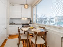 Erillinen ruokailutila keittiön yhteydessä - mahdollisuus käyttää myös työtilana.