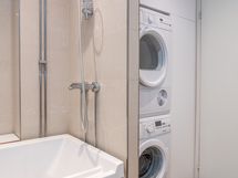 - Eirttäin hyväkuntoinen, kokonaan remontoitu keittiö. Integroidut jääpakastinkaappi ja astianpesukone. Kalusteuuni, induktioliesi, liesituuletin.