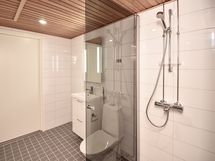 Varusteet: WC, suihku, suihkuseinä, allaskaappi, peili