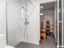 Kodista löytyy kolme eri kokoista makuuhuonetta, jotka soveltuvat hyvin eri elämäntilanteisiin. Yhdestä makuuhuoneesta on suora käynti takapihan terassille, josta pääsee kulkemaan talon ympäri. Myös varastotilan riittävyydestä on huolehdittu makuuhuoneiden tilavilla kaapistoilla, sekä sisäänkäynnin yhteydessä olevalla tilavalla lämpimällä ulkovarastolla ja erillisellä häkkivarastolla. Kylpy- ja saunaosaston katseenvangitsijana on ajattoman kauniit kaluste- ja laattavalinnat sekä näyttävät lasipinnat. Erillinen toinen wc lisää arjen toimivuutta.