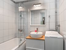 - Pesutilojen kuvaus: Remontoitu kylpyhuone, missä kylpyamme. Pesukoneliitäntä. Erillisen WC:n kuvaus: Erillinen wc.