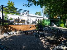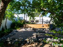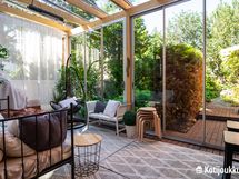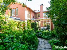 Vaikka asuinalue on tiiviisti rakennettua kaupunkialuetta, niin oma tontti tarjoaa ihanaa suojaa ja yksityisyyttä. Pihaporttien takaa aukeaakin satumaisen vehreä paratiisi, jonka sorapintaiset polut kulkevat kauniisti pensaiden ja puiden lomassa luoden välimerellisen ilmapiirin. Pihan sydämenä toimii kaunis nuotiopaikka, joka yhdessä pergolan kanssa kutsuu nauttimaan iltahetkistä ulkosalla.