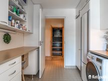 Kylpy- ja saunatilat sijoittuvat talon keskelle, jonka yhteydestä löytyy käytännöllinen kodinhoitohuone, joka vastaanottaa arjen touhut ja haasteet omalla sisäänkäynnillään.