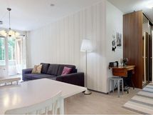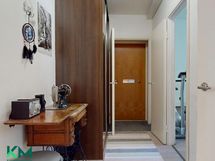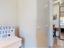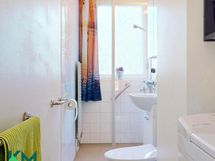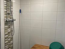 - Suihkuseinä (pieni), peilikaappi, kylpyhuonekaapisto, pesukoneliitäntä.