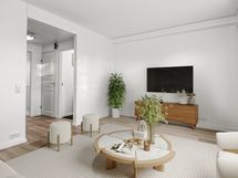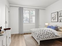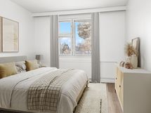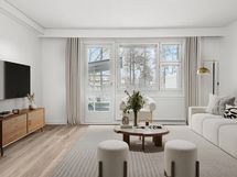 Tämä hyvin hoidetun taloyhtiön asunto sijaitsee rauhallisella ja hiljaisella puolella tonttia ja takapiha on pensasaidoin suojattu takana kulkevan kevyenliikenteenväylän suuntaan.