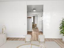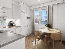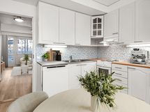 Golven i lägenheten har nyligen förnyats överallt förutom i köket. Samma högklassiga vinylplankor har införskaffats färdigt för köket, ifall köparen vill ha samma stil i köket som i övrigt i lägenheten.