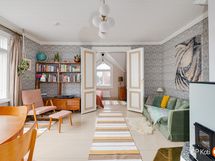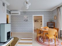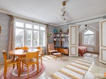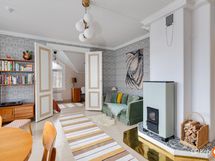 Det här personliga hemmet passar dig som uppskattar gammaldags charm kombinerad med modern boendekomfort. Den välplanerade bostaden skapar rymliga ramar för både ensamboende och par. Det öppna vardagsrummet och köket bjuder in till umgänge, medan sovrummet erbjuder ro och tystnad tack vare ljudisolerade ytterväggar. Hemmets detaljer som de renoverade trägolven, de restaurerade innerfönstren och den stämningsfulla värmelagrande spisen ger boendet en särskild värme. Kokvrån är utrustad med modern teknik för att möta dagens behov, och en luftvärmepump bidrar till vardagskomforten. Den egna ingången betonar självständighet och gör vardagen smidig.