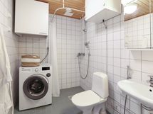 Tilavan pesuhuoneen yhteydessä on asunnon wc, ja pyykkihuolto.
