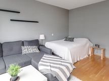 Nu till salu en mycket välplanerad och rymlig etta på 3/4 våningen i ett hus med hiss. Lägenheten är i ursprungligt men prydligt skick. Den är för närvarande uthyrd, men blir ledig senast 31.5.