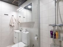 - Pesutilojen varusteet: WC-istuin, suihku, peilikaappi, pesuallas, allaskaappi, bidee-suihku ja suihkuseinä.
