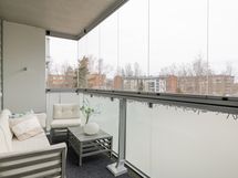 - Parvekkeen tyyppi: Lasitettu ja ulostyönnetty parveke