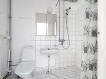 - Suihku, Pesukoneliitäntä, Tilaa pesukoneelle, Kaapisto, Allas, WC-istuin, Peilikaappi