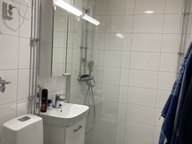 Suihku, Suihkuseinä, Pesukonevalmius, Allaskaappi, Peilikaappi, Laattaseinä
