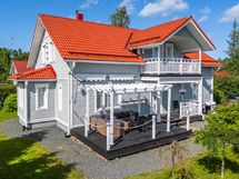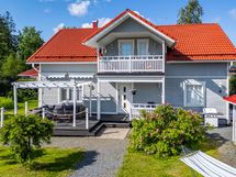 Tämän kauniin, vuonna 2011 valmistuneen Desing-talon rakennusvaiheessa on otettu jo huomioon arjen käytännöllisyys ja elämän eri vaiheet. Hienot, avarat tilat, neljä erillistä makuuhuonetta yläkerrassa omassa rauhassaan, terassi piha-alueella, suora kulku ulkoa kodinhoitohuoneeseen jne.