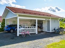 Autot on helppo ajaa suoraan tilavaan katokseen, jossa on paikat kahdelle autolle. Katoksen päädyssä on lämmin, reilunkokoinen varastotila. Lisäksi pihalla on erillinen varasto.