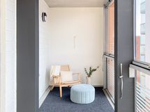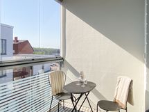 Valoisa ja toimiva kolmio isolla lasitetulla parvekkeella!