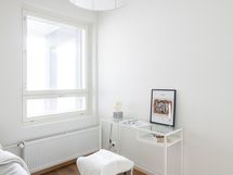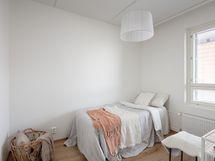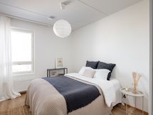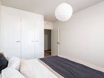 Asunnossa on kaksi makuuhuonetta. Pienempi huone sijaitsee olohuoneen vieressä ja sopii hyvin esimerkiksi työ- tai lastenhuoneeksi. Isompi makuuhuone on sijoitettu rauhallisesti asunnon toiseen päähän. Molemmissa huoneissa on kiinteät kaapistot, ja pienempään mahtuu sängyn lisäksi myös työpöytä.