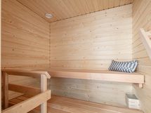 Sujuva sisääntulo toivottaa tervetulleeksi käytännöllisyydellään. Eteisessä on runsaasti säilytystilaa: tanko- ja hyllykaapit ulkovaatteille sekä omat kaapit siivoustarvikkeille ja pyykeille.