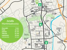 Martinlaakso sijaitsee Länsi-Vantaalla Myyrmäen pohjoispuolella, junaradan ja E12-valtatien kupeessa. Junalla matkaat Helsingin keskustaan vain 20 minuutissa tai lentokentälle reilussa vartissa. Linja-autoilla kuljet sujuvasti myös ympäri Vantaan. Martinlaaksosta kuljet mukavasti myös omalla autolla, sillä vain muutamassa minuutissa liityt E12-valtatielle, josta jatkat ripeästi Hämeenlinnaan tai vaikka Tampereelle saakka.