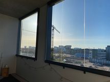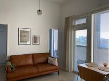 Huonekorkeus on lähes 3,5 metriä, joka antaa mahtavaa tilantuntua. Lisäksi koko asunnon levyinen lasitettu parveke tuo vielä lisätilaa ja mahdollistaa tilan monipuolisen käytön.