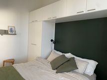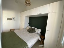 Makuuhuoneessa on kaapistot ja parisänky mahtuu huoneeseen. Kylpyhuone on tilava ja mahdollistaa pesutornin liittämisen. Huoneistossa on vesikiertoinen lattialämmitys eli ei tilaa vieviä pattereita!