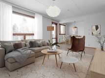 Ensimmäisen asuinkerroksen tilava huoneisto toimivalla pohjaratkaisulla. Asunnossa on vasta remontoitu keittiö. Modernin keittiön yhteyteen mahtuu isokin ruokapöytä koko perheen yhteiseen ruokailuun. Avarasta ruokailutilasta on käynti lasitetulle parvekkeelle. Suuri olohuone sekä kolme hyvän kokoista makuuhuonetta tekevät tästä asunnosta toimivan kodin. Asumismukavuutta lisäävät tilava saunallinen kylpyhuone sekä erillinen wc. Asunnossa on edellisen asukkaan muutostyönä asennuttamat sälekaihtimet ja parvekelasitus.