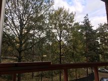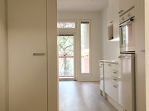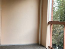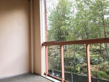 Asunnon lasitetulta parvekkeelta on mukava puistoinen näkymä.