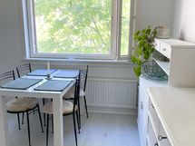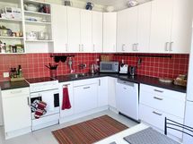 - Tilaa isolle ruokapöydälle, Suuri tiskipöytä, Paljon kaappitilaa, Paljon työskentelytilaa, Laminaattitasot, Astianpesukone, Induktioliesi, Liesituuletin, Jää-pakastinkaappi