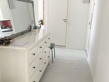 - Suihku, Suihkuseinä, Pesukone, Allaskaappi, Peilikaappi, Laattalattia, Laattaseinä, Rättipatteri