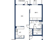Tämä 66 neliöinen asunto on rakennuksen toisessa kerroksessa. Asunnon kolme huonetta tarjoavat mukavasti tilaa ja joustavuutta erikokoisille asukaskokoonpanoille.