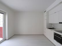 Asunnon materiaalit ovat laadukkaita ja kestäviä. Luonnonvalo tulvii sisään ranskalaisen parvekkeen pariovista ja asunnon vaaleat pinnat lisäävät valoisuutta.