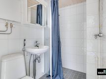 - Pesutilojen varusteet: WC-istuin, pesukoneliitäntä, suihku ja peilikaappi. Pesutilojen kuvaus: Remontoitu linjasaneerauksen yhteydessä.