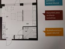 - Häkkivarasto. Lisätietoja säilytystiloista: Häkkivarasto ullakkokerroksessa, lähellä asuntoa.
