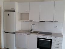 - Keittiön varusteet: Jääkaappi, erillinen pakastin, liesi, liesituuletin ja astianpesukone. Liesi: Keraaminen liesi. Työtason materiaali: Puu. Keraaminen liesitaso , kalusteeseen upotettu erillisuuni, liesikupu ja astianpesukone sekä jääkaappi , erillinen pakastin. Valkoiset kaapistot , puutasot.