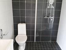 - Pesutilojen varusteet: WC-istuin, suihku, suihkuseinä, pesukoneliitäntä, lattialämmitys, peili, pesuallas ja allaskaappi. Pesutilojen kuvaus: Suihku, suihkuseinä , pesukoneliitäntä , wc , laattalattia , laattaseinä, lattialämmitys.