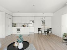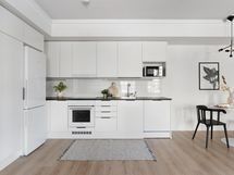 - Liesi: keraaminen, erillisuuni. Työtasot: laminaatti. Kylmäsäilytys: jääkaappi/pakastin. Varustus: liesikupu, astianpesukone.