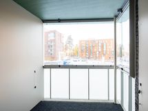 Lasitettu länsiparveke ilta-auringon suuntaan.