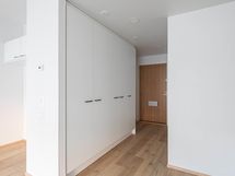 Eteisessä on hyvin kaapistoja tavaroiden säilytykseen, jotka rajaavat myös hieman alkovin paikkaa.