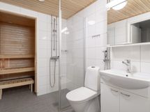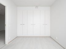 Makuuhuone on tilava ja sen yhteydessä on runsaasti säilytystilaa. Olohuoneesta on kulku lasitetulle parvekkeelle, johon aiempi asukas on asentanut sälekaihtimet. Asumismukavuutta lisää oma sauna. Kylpyhuone on laatoitettu ja siellä on liitännät pyykinpesukoneelle.