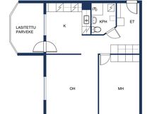 - Parvekkeen tyyppi: Lasitettu. Parvekkeen suunta: Lounas.