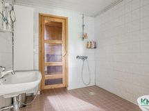 - Kylpyhuone, suihku, peili, pesukoneliitäntä, kylpyhuonekaapisto, kiinteät valaisimet, erillinen wc, sähkösauna