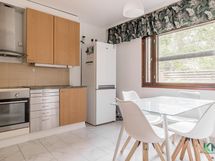 - Jenkkikaappi, keraaminen liesi/uuni, astianpesukoneliitäntä, astianpesukone, kaapistot, liesituuletin hormiin
