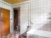 Kylpyhuone, suihku, peilit, kiinteät valaisimet, erillinen wc, puusauna